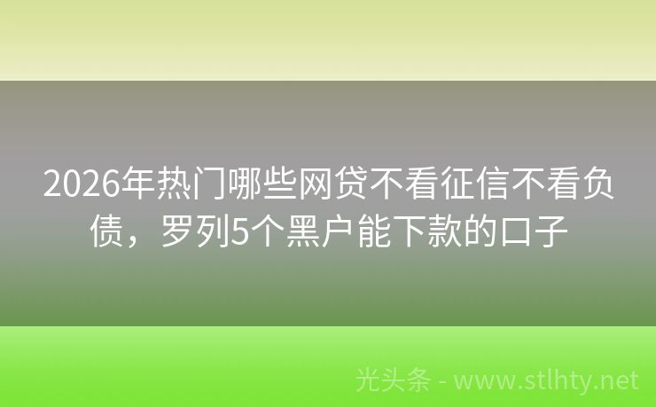 2026年热门哪些网贷不看征信不看负债,罗列5个黑户能下款的口子 在当今快节奏的生活中,我们时常会遇到一些突发的小额资金需求,比如临时应急、购物分期或者生活周转,这时候,小额贷款就成为了许多人的首选,有哪些靠谱的哪些网贷不看征信不看负债可以信赖呢?我将为大家详细介绍五个热门的哪些网贷不看征信不看负债,让您在关键时刻能够轻松借款,解决燃眉之急。 2026年的哪些网贷...