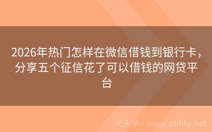 2026年热门怎样在微信借钱到银行卡,分享五个征信花了可以借钱的网贷平台 急需资金周转?这里有五个优选怎样在微信借钱到银行卡,额度高、利息低、申请便捷。 2026年的怎样在微信借钱到银行卡有:快贷易、闪借快融、甄宝分期、爱钱进、易融贷宝等。 一、快贷易 快贷易是一款个人消费信贷产品,由持牌金融机构推出。贷款额度从几千元到几万元不等,申请条件较为宽松,主要针对有稳定工作和收...